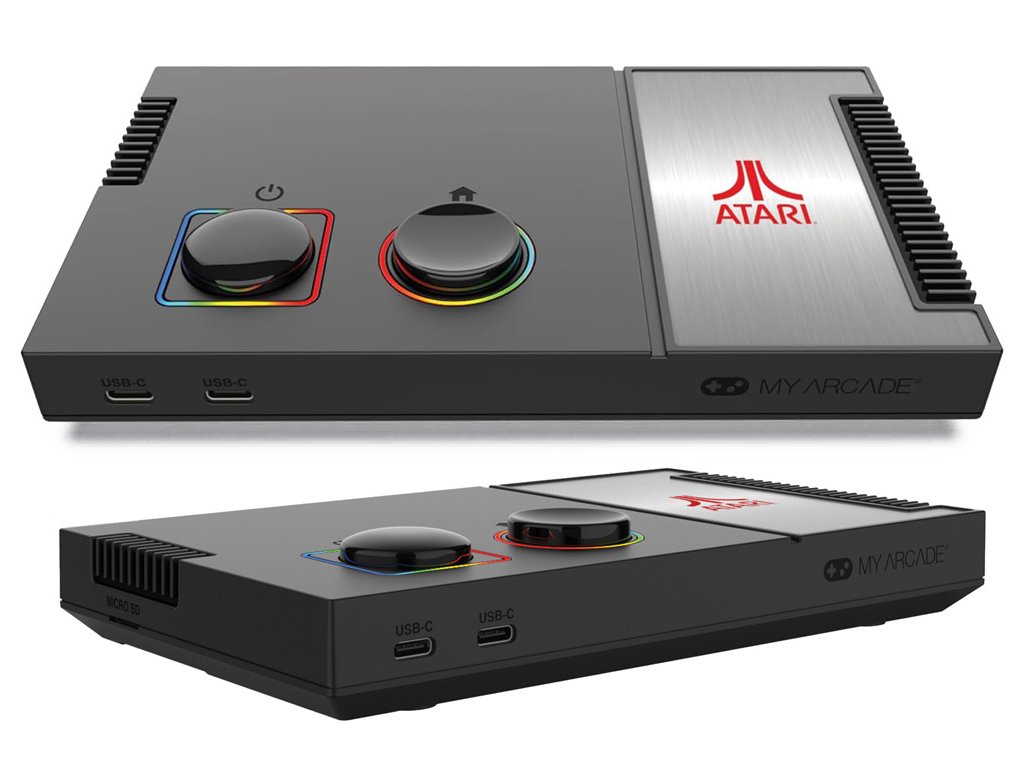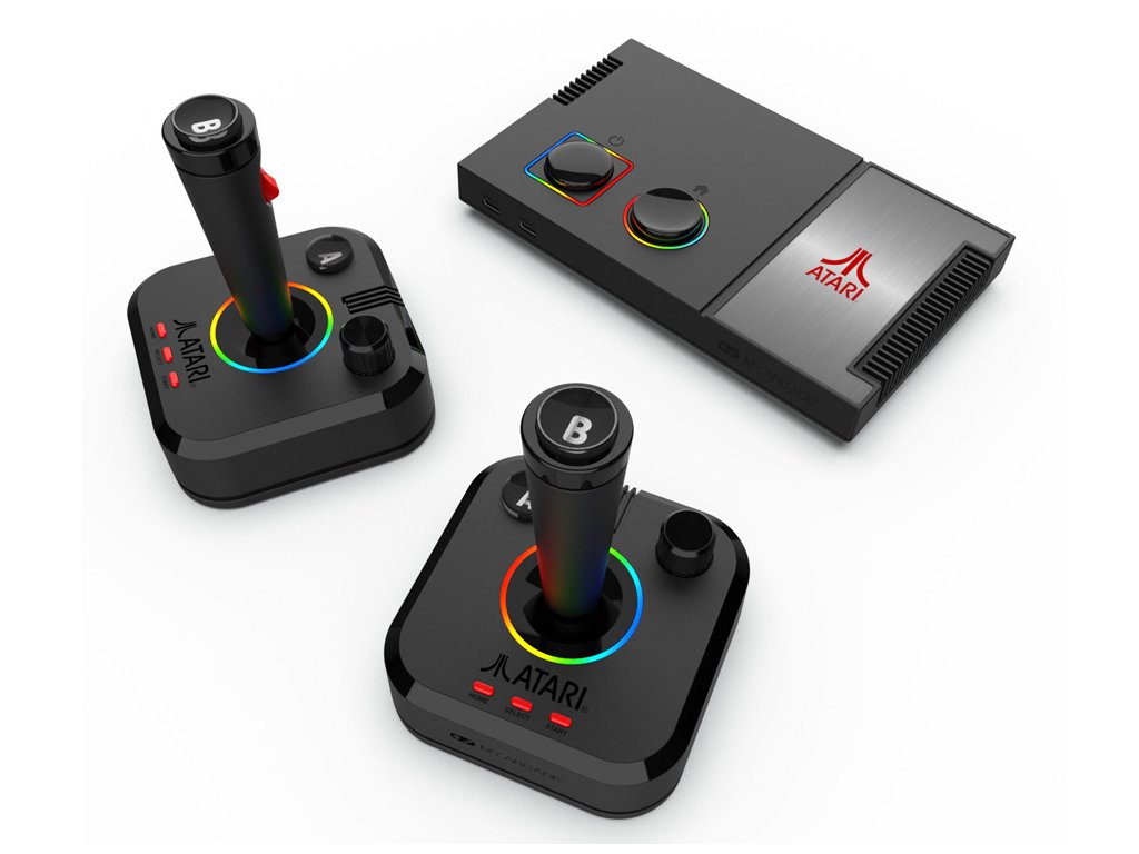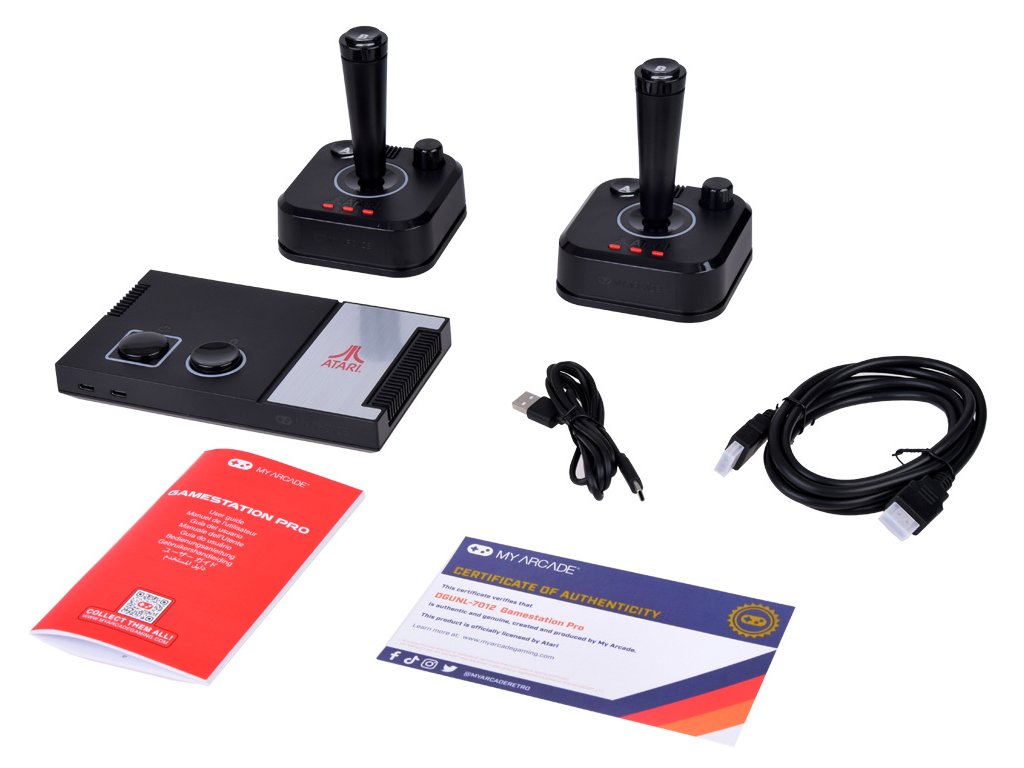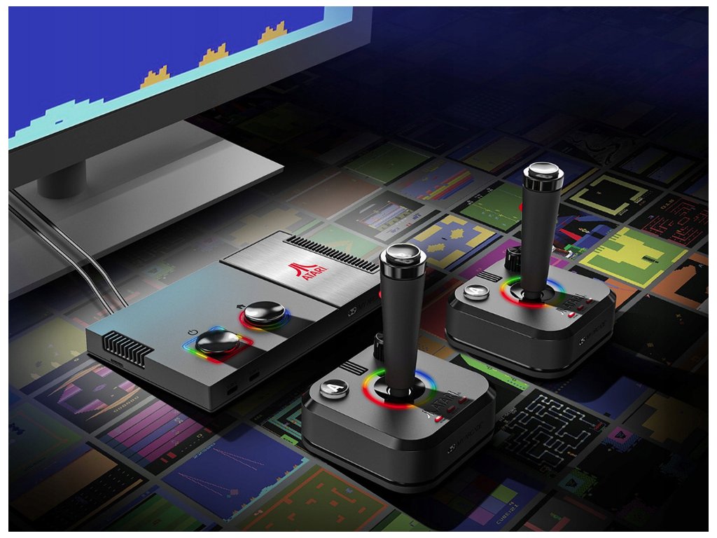 - Два безжични джойстика с честота 2.4 GHz, проектирани специално за феновете на класическите игри, като същевременно запазват духа на оригиналните контролери Atari. Вградените палетки позволяват игра на емблематични заглавия като Breakout® и Warlords®, гарантирайки автентично гейминг изживяване.