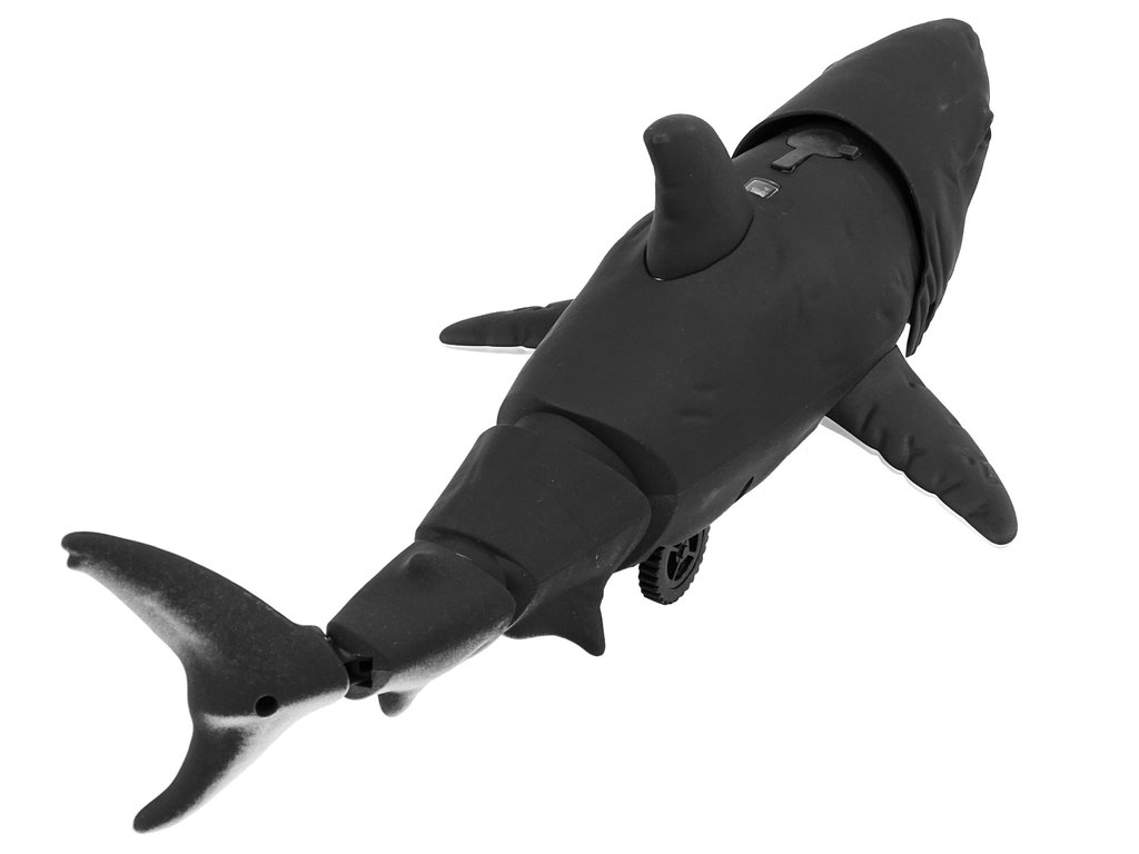 По време на игра движи опашката и цялото тяло, светещите очи и начинът на движение напомнят на истинска акула. Най-голямата изненада е функцията за пръскане на вода. Отзад има отвор, в който наливате вода.