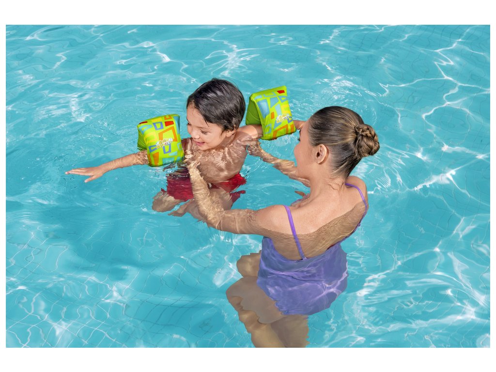 Първият опит на детето за контакт с вода може да бъде предизвикателство. Ръкавиците за плуване зелени M/L са идеални за начално обучение и придобиване на увереност във водата. Техният атрактивен цвят и дизайн с шарки ще насърчат най-малките да се забавляват и да бъдат активни. Освен това, с тях имате гаранция, че детето ви е защитено и в безопасност по време на плуване. Ръкавиците са изработени от здрав и устойчив на повреди материал и се надуват бързо. След сгъване заемат минимално място, което ги прави удобни за носене на всеки воден излет.