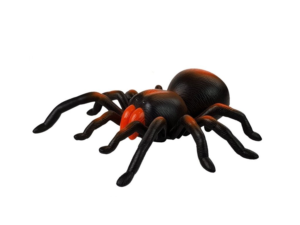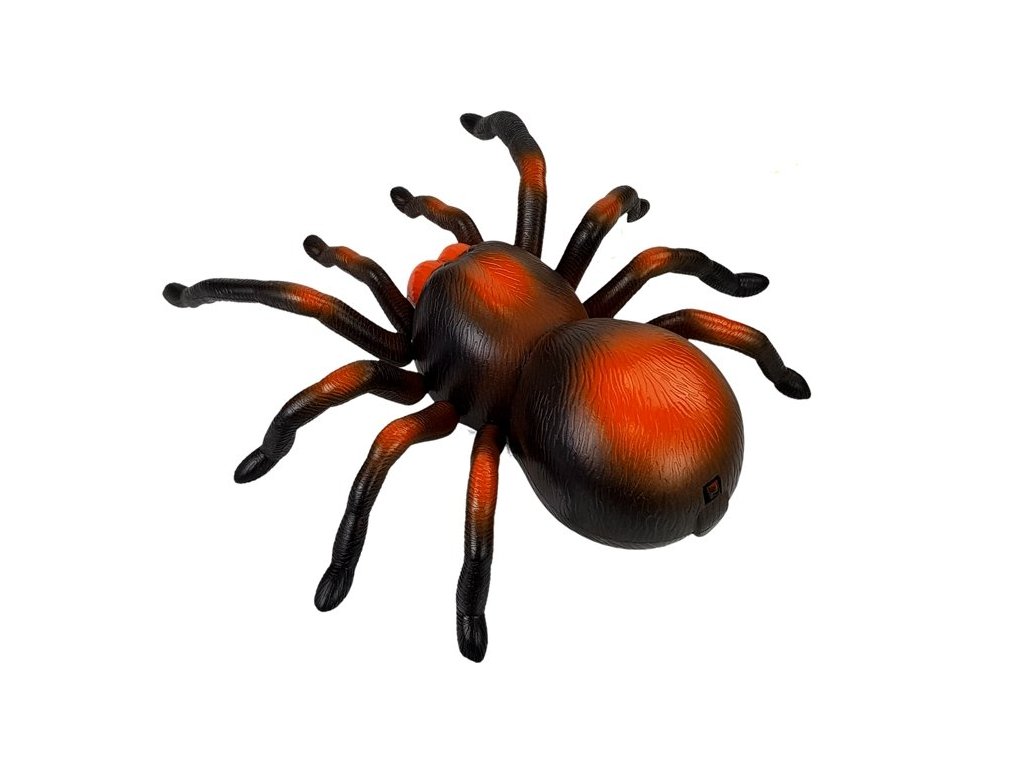 Роботизиран паяк с дистанционно управление е страхотна играчка за деца, които мечтаят да имат свое собствено терариум. Оранжево-черният тарантул има светещи очи. Дистанционното управление разполага с два бутона, които позволяват на паяка да се движи напред и назад.