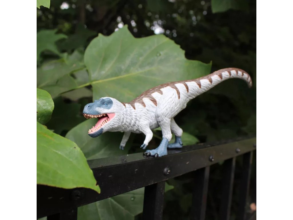 Реалистична фигурка на Nanuksaura, роднина на Tyrannosaurus rex, проектирана според находки от района на днешна Аляска. Изобразява вид, живеещ в райони с много висока географска ширина, изложен на по-студен климат; възможното изобразяване на пера илюстрира адаптация към ниски температури.