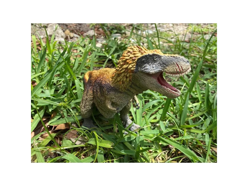 Детайлна фигурка на месояден динозавър с вярна моделировка и изразителна уста, пълна с остри зъби. Подходяща за креативна игра и като колекционерски артикул.