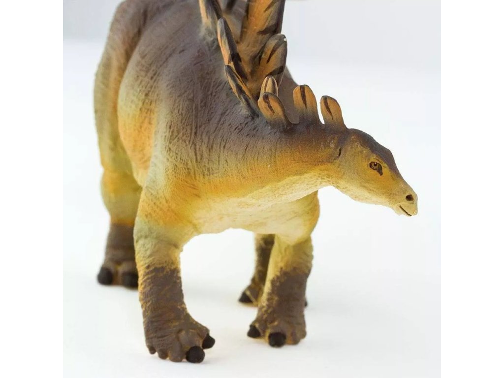 Реалистично изработена фигурка на Стегозавър, един от най-известните динозаври, характеризиращ се с редица костни плочи на гърба и четири шипа на опашката. Моделът подчертава тези типични характеристики на вида и тяхната предполагаема защитна функция срещу юрските хищници.