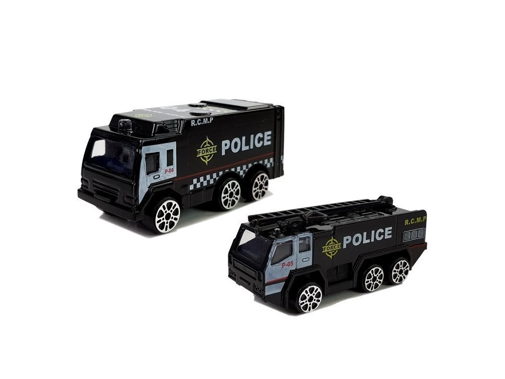 Самолет за превоз на автомобили е изработен в мащаб 1:64. Самолетът има отваряща се страна, която ви позволява да съхранявате колички вътре. От горната страна на самолета има дръжка за носене. Самолетът разполага със светлинни и звукови ефекти. В комплекта са включени три полицейски коли.