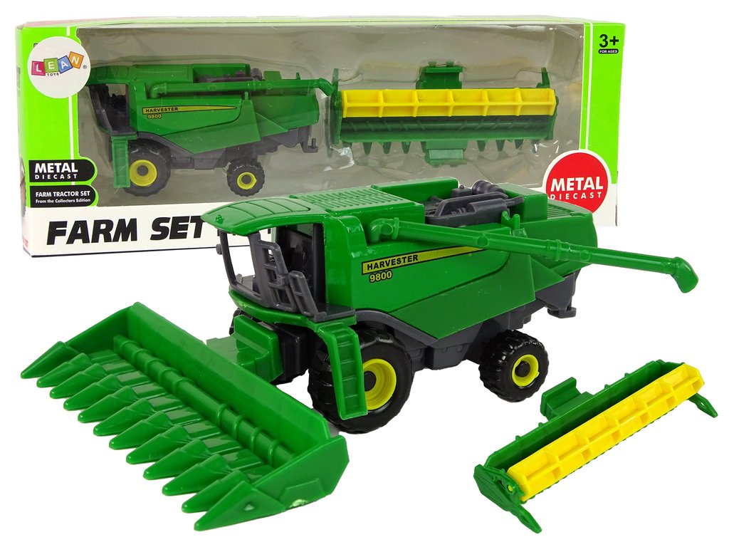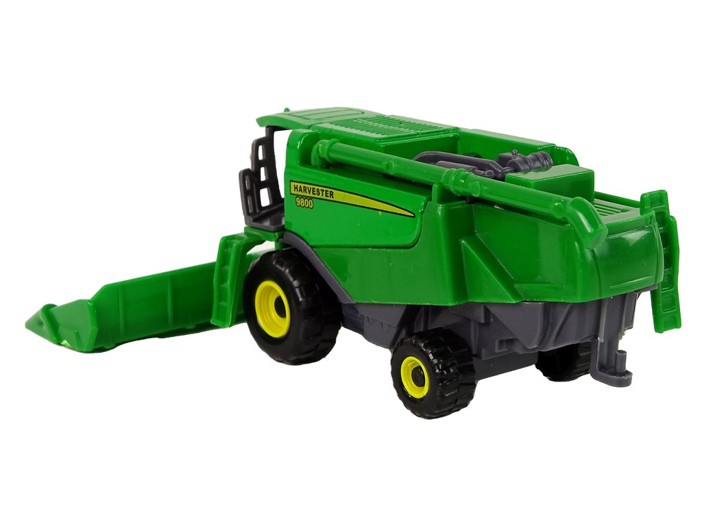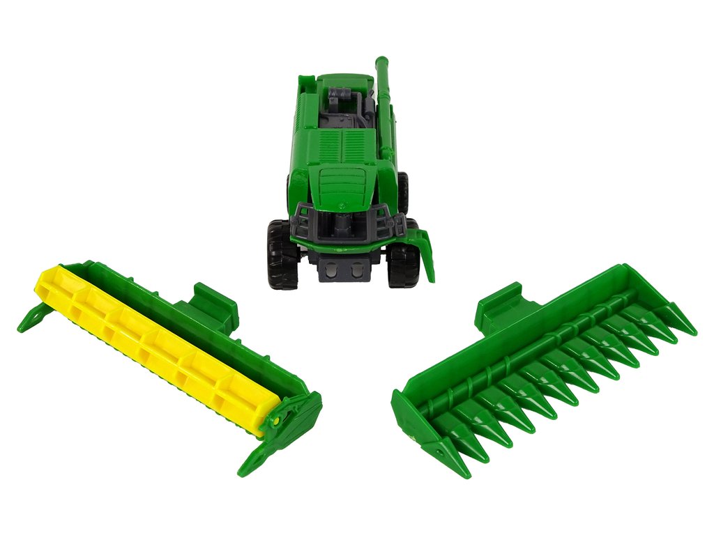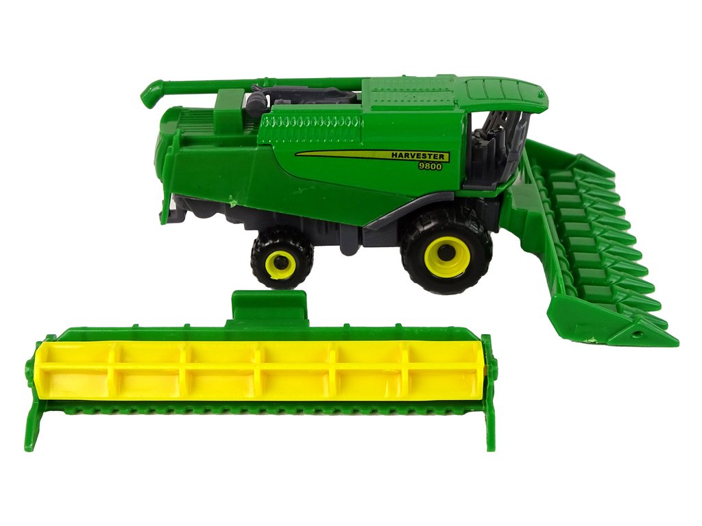 Този селскостопански комбайн със приставка зелен жълт е отличен избор за малки почитатели на селскостопанската техника и машини. Той се отличава с реалистичен дизайн и зелено-жълта цветова комбинация, която веднага грабва вниманието. Играчката е изработена от здрава пластмаса, гарантираща дълготрайна употреба.