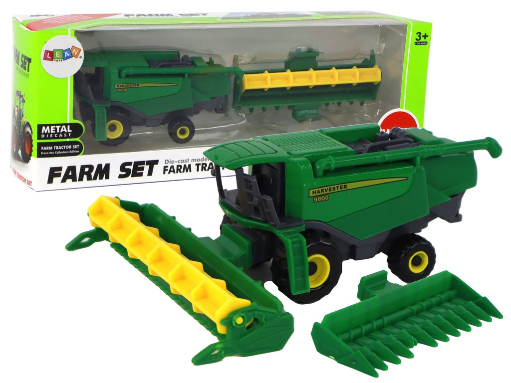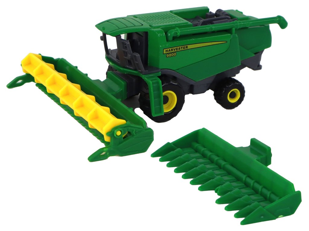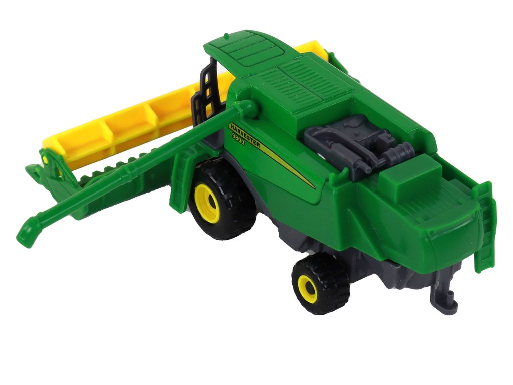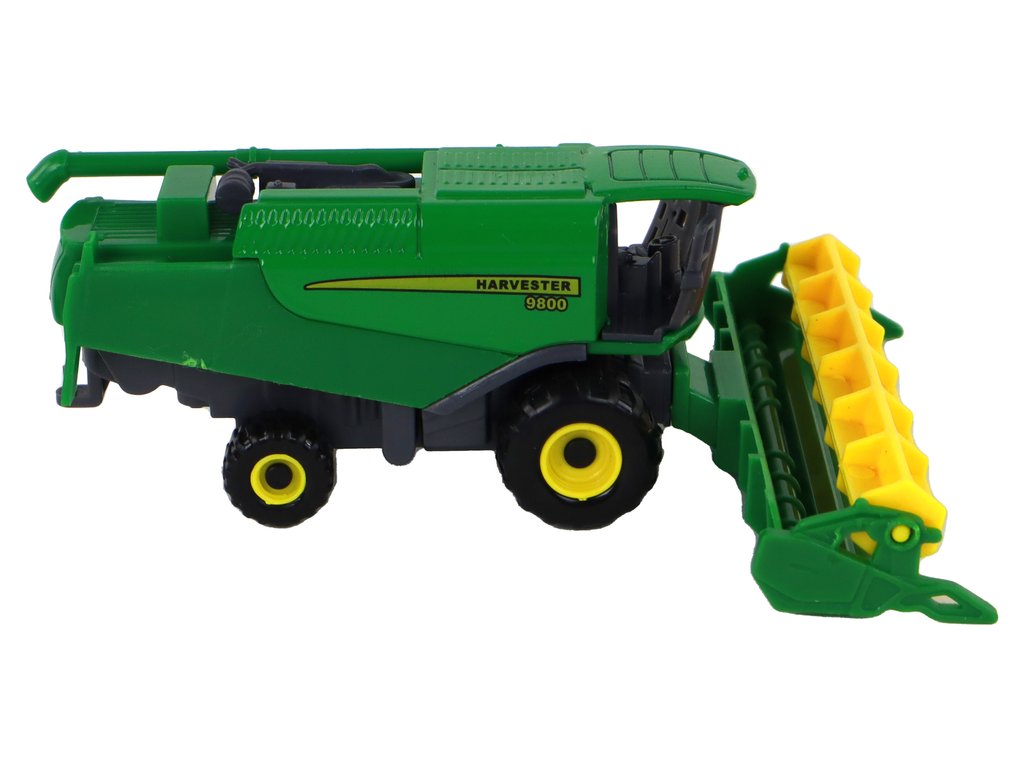 Малък зелен пластмасов селскостопански комбайн за деца е качествена играчка. Тя радва децата със своя реалистичен вид и изработени до най-малкия детайл елементи. Комбайнът е оборудван с отделящи се части, които обогатяват играта чрез интерактивност и подпомагат развитието на фини моторни умения.
