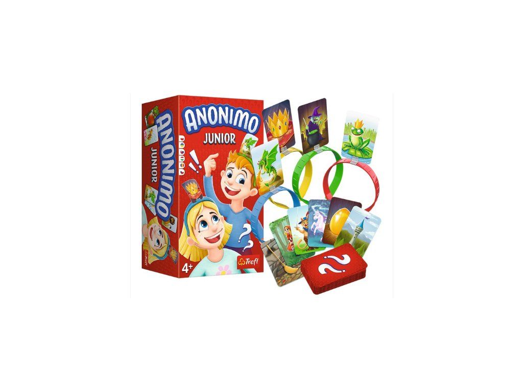 Anonimo Junior е лесна и забавна семейна игра, специално създадена за най-малките играчи. Всеки участник слага на главата си лента с изображение на герой и се опитва да познае кой е! Кой герой от легендите и приказките си ти? Задавай въпроси и се забавлявай с Anonimo Junior!