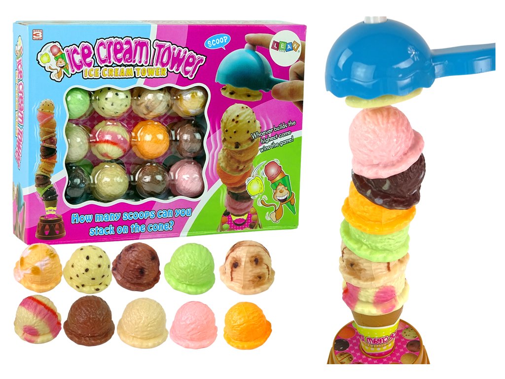 Вълнуваща семейна игра, която ще донесе много забавление. Целта на играта е да се изгради възможно най-висока кула от топки сладолед и да се задържи тя изправена.