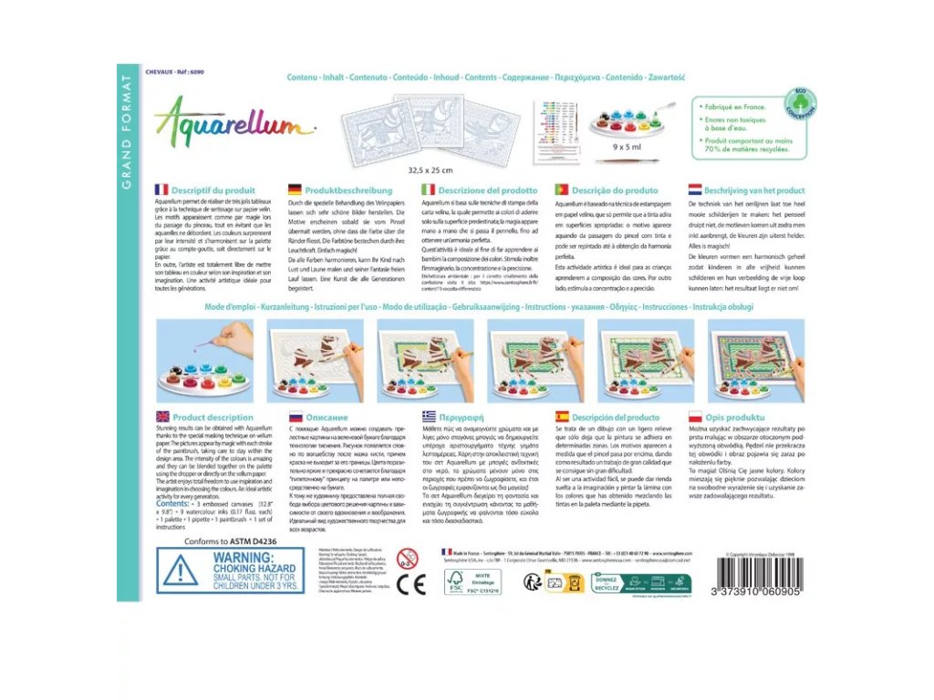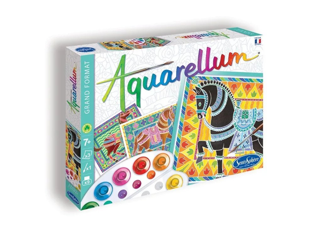 Креативен комплект Акварели - Коне е произведен от френската марка Sentosphere и е предназначен за деца, които обичат да рисуват и творят. Комплектът съдържа мотиви с коне и цветна палитра, адаптирана към акварелната техника.