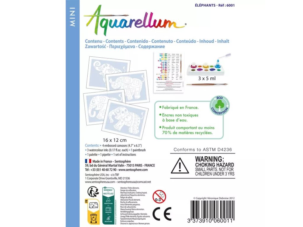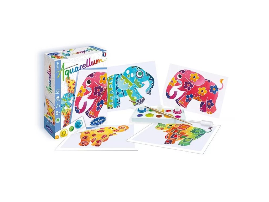Творчески комплект за изкуство, предназначен за създаване на акварелни картини с мотив слонове. Комплектът подпомага развитието на фината моторика, концентрацията, координацията око-ръка и креативното мислене.