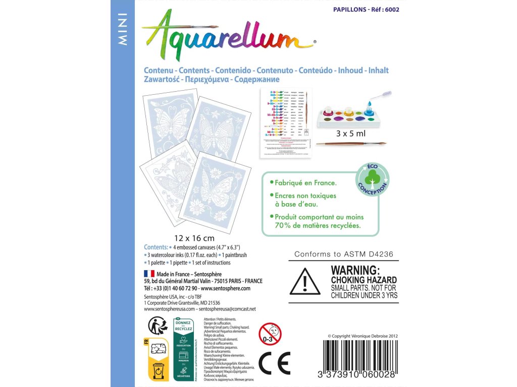 Боите са миещи се, а мастилата нетоксични. Подходящо за деца от 5 години.