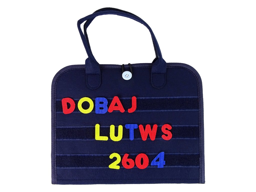 В комплекта има и букви, с които детето може да съставя думи. От външната страна са поставени лепящи велкро ленти, които надеждно задържат буквите на място.