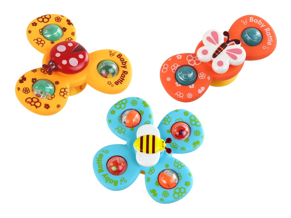 Сензорична играчка Спинър с вендузи 3 вида е уникален комплект спинъри, който ще донесе на Вашето дете незабравими моменти, изпълнени с радост и креативна игра! Този комплект съдържа три очарователни спинъра - калинка, пчеличка и пеперуда, които пленяват детето с визията си и същевременно развиват неговите сетива.