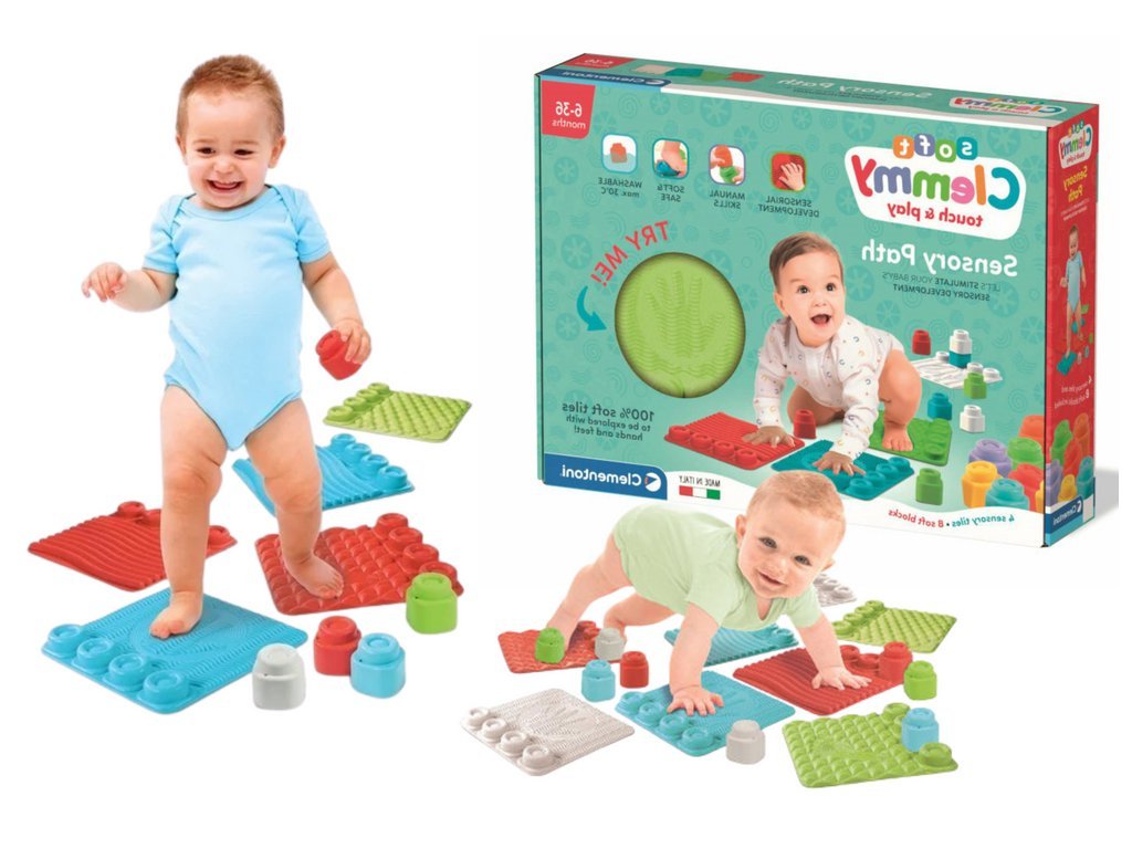 Развиваща осезателното възприятие, тази подложка е изработена от големи елементи от мека, безопасна и нетоксична гума, проектирана да осигури на бебетата интересен и ангажиращ преживяване. Елементите имат различни грапави текстури, които стимулират осезателното възприятие на детето. На елементите са изобразени форми на кубчета Clemmy, което позволява на детето с радост да подрежда кубчета и да строи множество кули. Подпомага развитието на осезателните усещания, наблюдателността и фината моторика. Продуктът е предназначен за деца над 6 месеца.