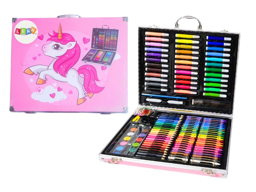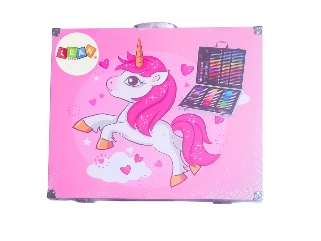 Сет за изкуство в куфарче с еднорог 150 части е идеалният комплект за всеки млад творец, който иска да развива своето въображение и изобразителни умения. Този комплект е създаден специално за деца, като предлага всички необходими материали за осъществяване на разнообразни художествени проекти.
