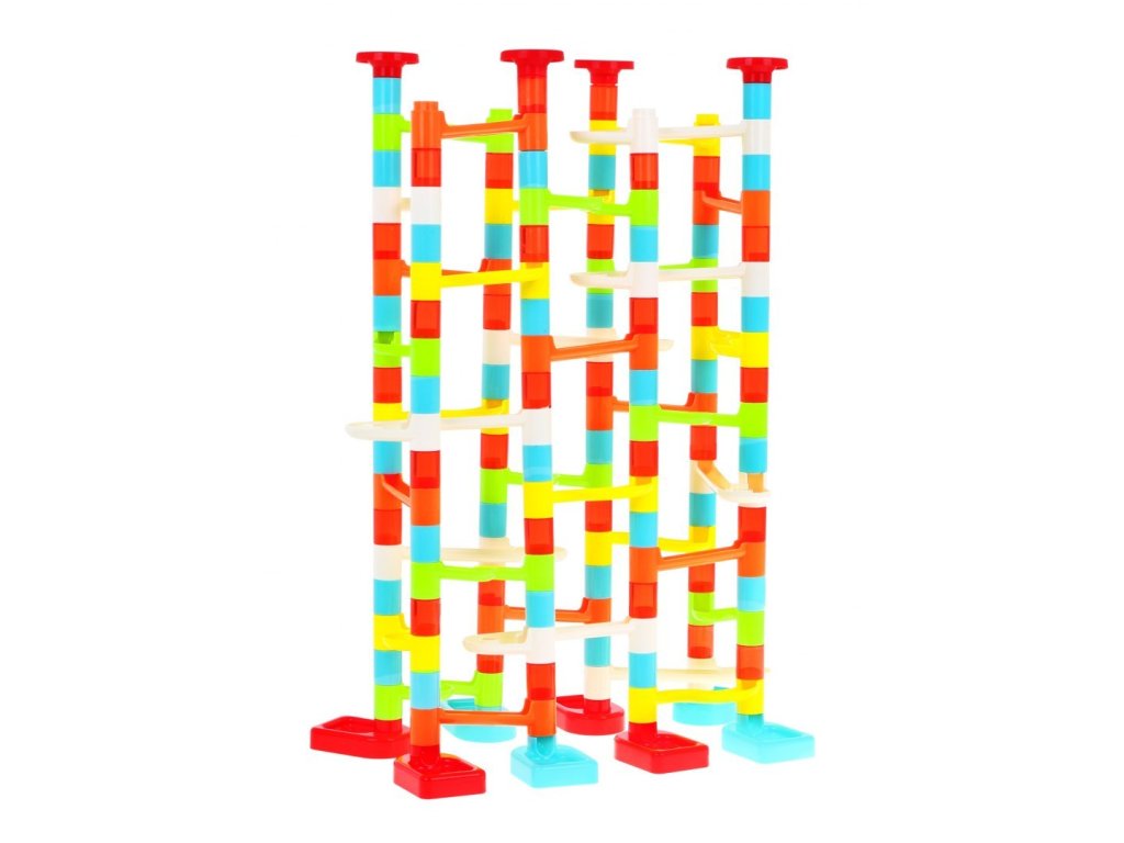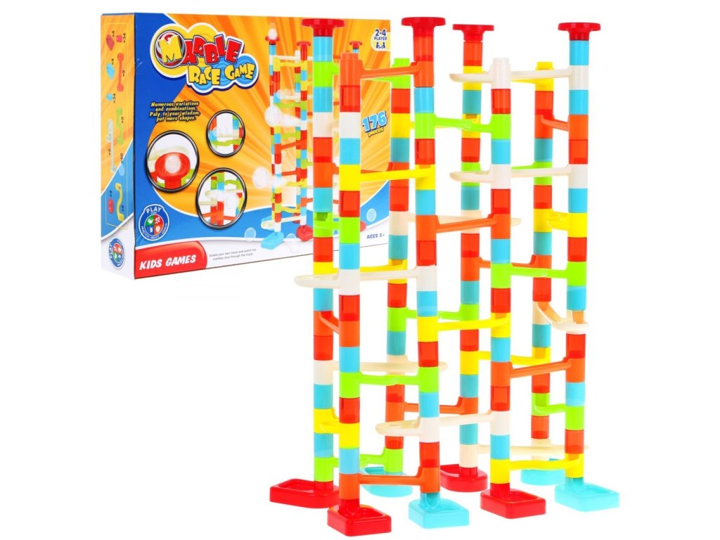 Сферичен пист със 176 части е забавна игра както за деца, така и за възрастни. Когато поставите топчето в движение, може да наблюдавате как преминава през препятствия, как минава през различни тунели и как скоростта му се променя според наклона на пистата. Играчката развива въображението, креативността и моторните умения.