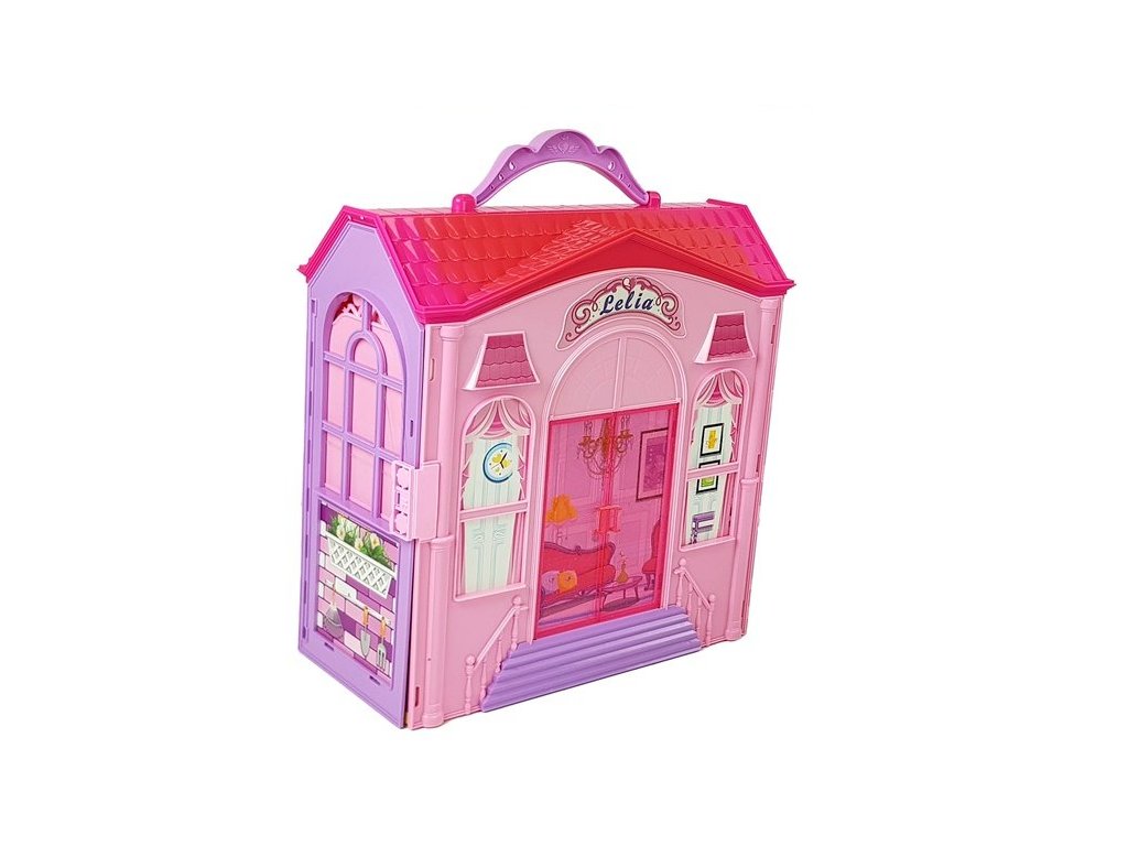 Всяка момиченце мечтае за собствен сгъваем куклен дом с обзавеждане, който може да бъде взет навсякъде със себе си благодарение на удобната дръжка за пренасяне. Красивият цветен куклен дом с гардероб ще зарадва всяко дете. Комплектът включва елегантна кукла с рокличка.