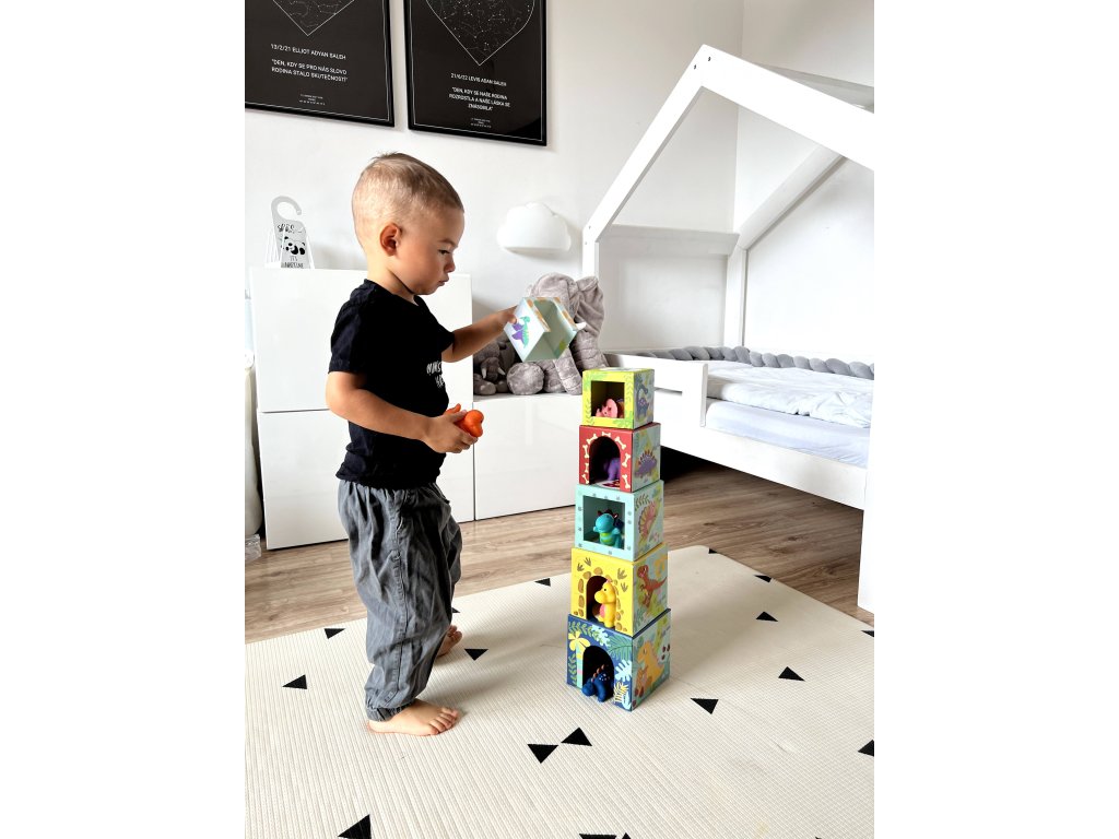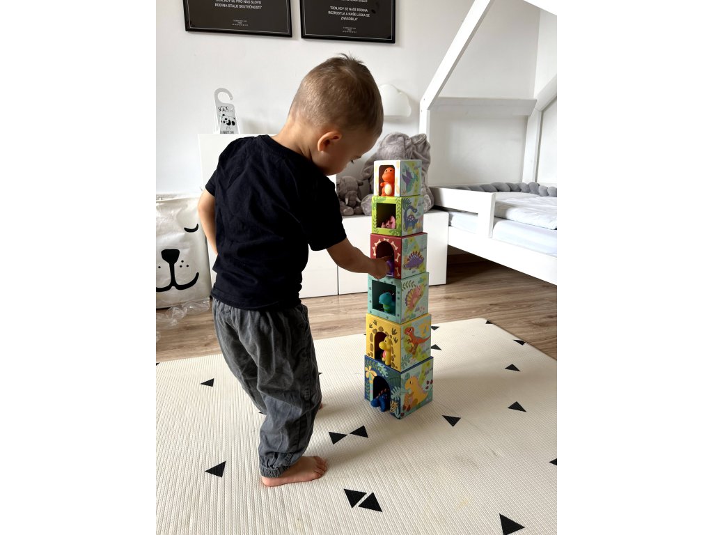 Представяме ви Сгъваеми блокчета Дино свят, идеални за деца над 12 месеца. Тази играчка е проектирана да подпомага разпознаването на форми, цветове и координацията ръка-око. Комплектът включва цветни блокчета с изображения на динозаври и малки фигурки, които децата могат да стекат, подреждат и да играят с тях. Изработена е от безопасни и екологично чисти материали, които са щадящи детската кожа и устойчиви на употреба.