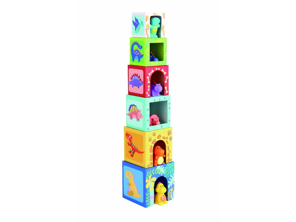 Dřevěné skládací kostky s dinosaury