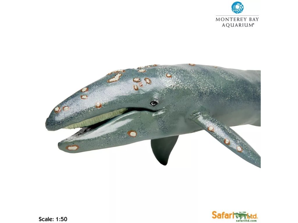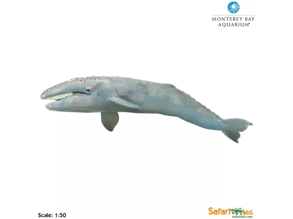 Реалистична фигурка, представяща син кит с изобразяване на основните биологични характеристики на този вид.