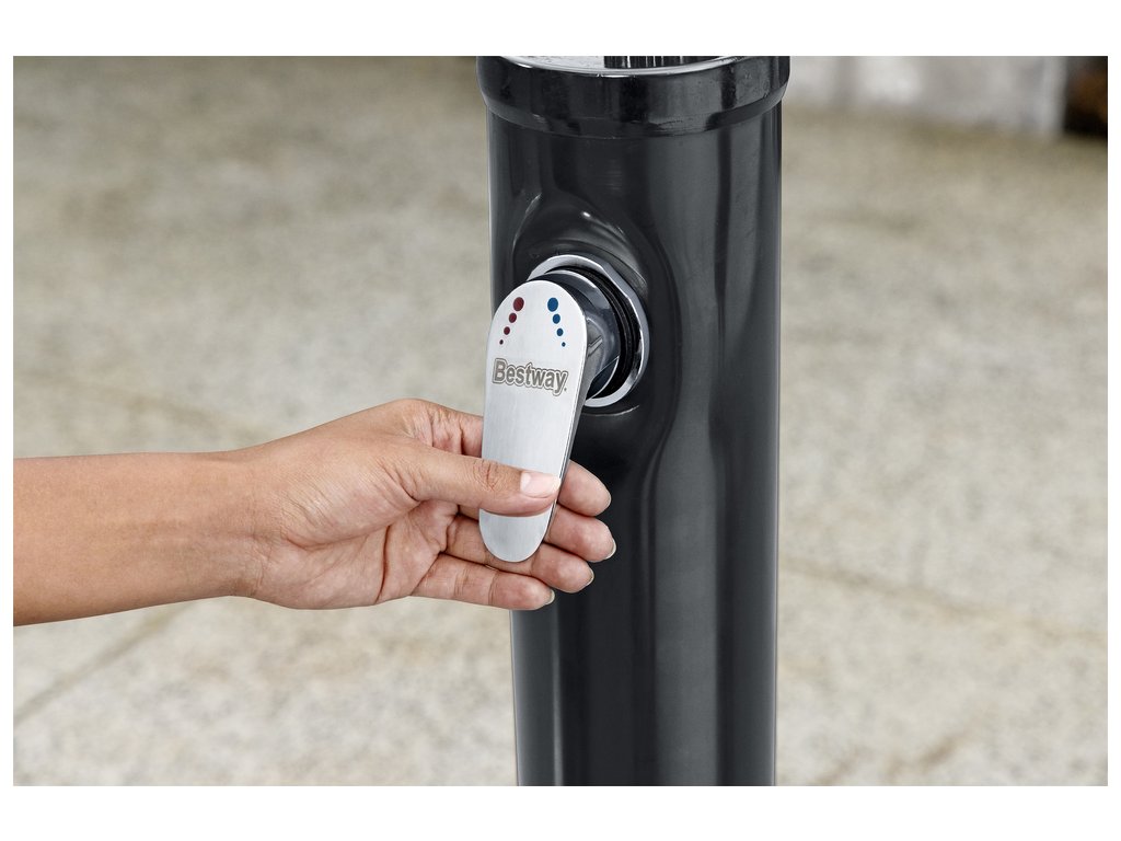 Соларен душ 8л Bestway с регулируема температура на водата разполага със стабилна поставка, осигуряваща устойчивост. Душът е изработен от здрав и издръжлив материал, който гарантира дълъг експлоатационен срок и устойчивост на метеорологични условия.