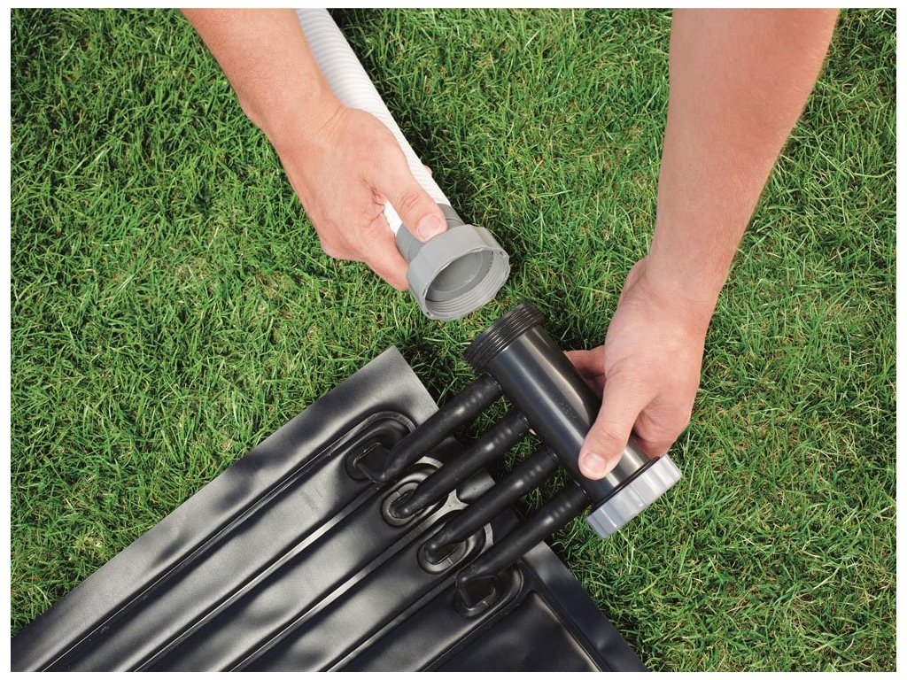 Този соларен панелен отоплител за басейн не заема много място, е икономичен и лесен за употреба. Успява да затопли водата с до 5 градуса. За правилната му функция е необходимо филтърно помпено устройство. Панелът се свързва към кръга на водната помпа или пясъчната филтрация и слънцето се грижи за останалото. Отоплителят е изработен от здрав PVC пластмаса с дебелина 0,9 мм, което значително удължава експлоатационния му живот.