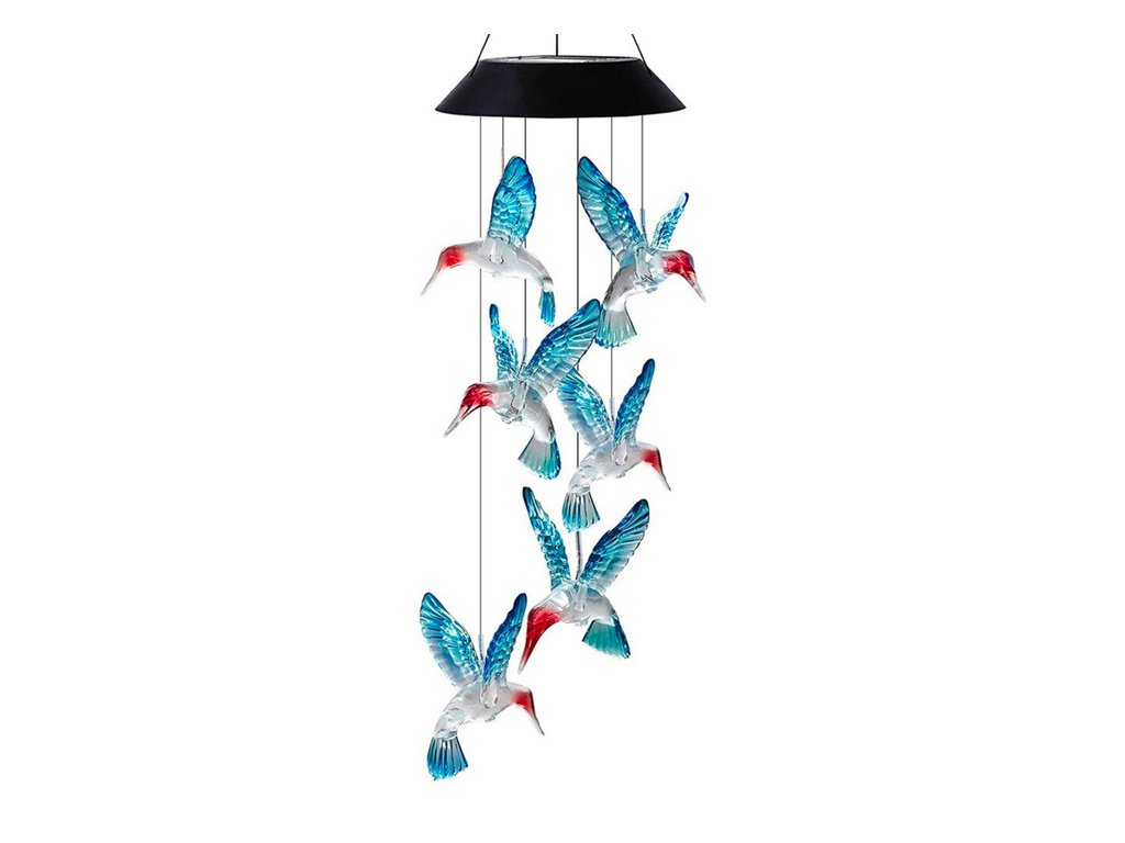 Колибритата са изработени от издръжлив дуралуминий, който добавя хармоничен звук, а прозрачните акрилни тръбички с LED RGB диоди им придават елегантен и стилен вид. Благодарение на водоустойчивия дизайн, лампата може да бъде окачена на дървета, огради, беседки или прозорци. Времето за зареждане на слънце е 6-8 часа, осигурявайки до 8 часа светлинна работа.