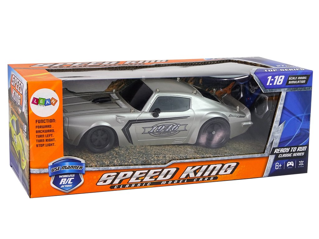 Спортен автомобил с дистанционно управление RC Champion 1:18 сив разполага с лека и здрава конструкция, спортен дизайн с черни прозорци и черни детайли по капака, както и с декорации Champion 1946. Гумените гуми осигуряват отлично сцепление с повърхността при управление.