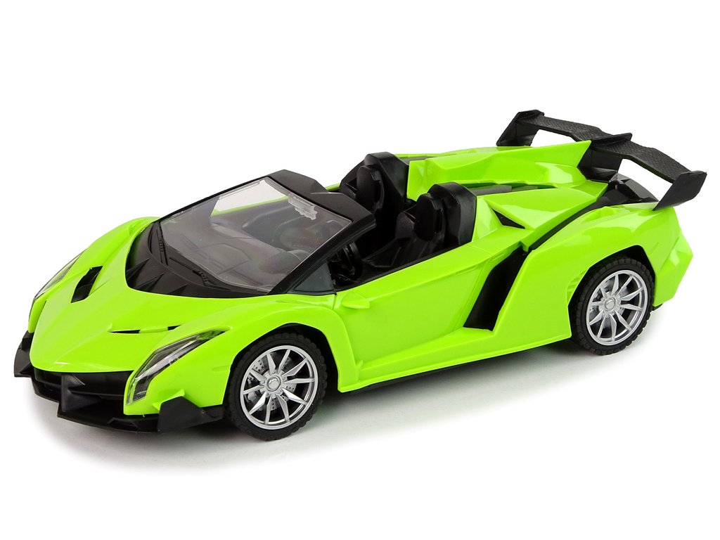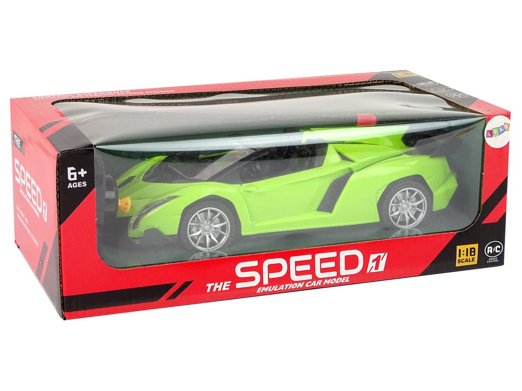 Спортна кола с дистанционно управление R/C 1:18 зелена разполага с лека и здрава конструкция и спортен дизайн с зелена каросерия. Гумени гуми осигуряват добро сцепление на различни повърхности.
