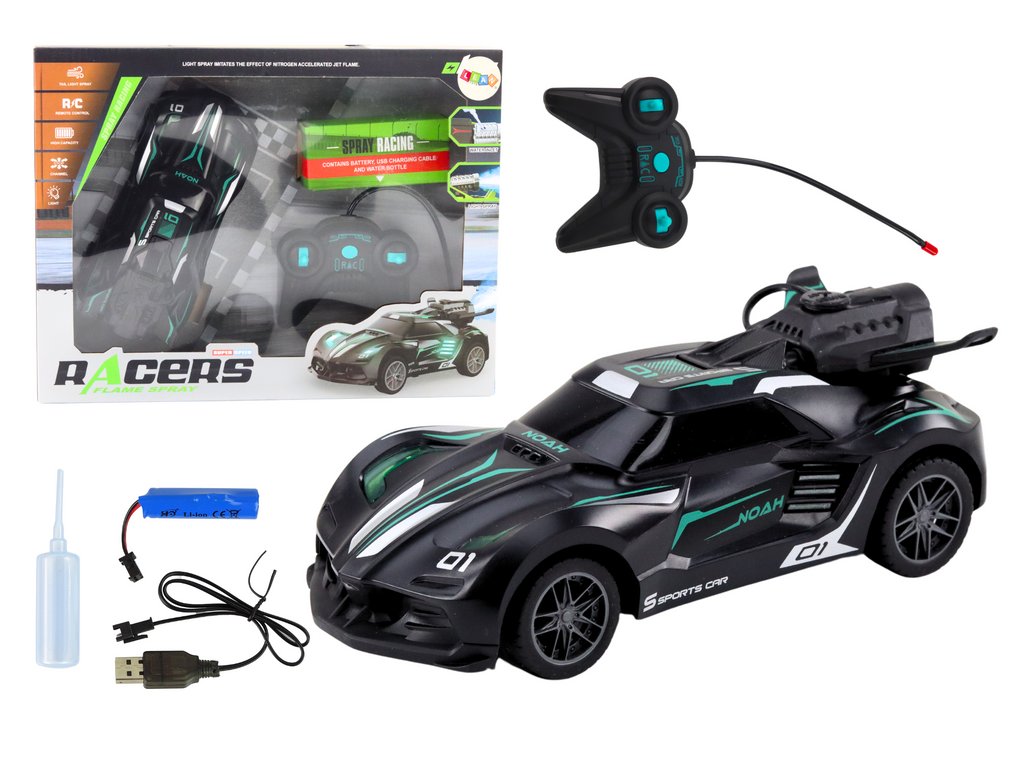 Дистанционно управляваната спортна кола с дистанционно управление R/C черна е перфектната играчка за деца, които обичат бързи автомобили. Заедно с реалистично изглеждащата кола ще получите и шише с вода, дистанционно управление, батерия и USB кабел за зареждане. Колата е оборудвана със светлинни ефекти. Това, което прави тази кола наистина специална, е фактът, че изпуска пара от ауспуха, което създава усещане за интензивно шофиране и подчертава автентичността на спортния автомобил.