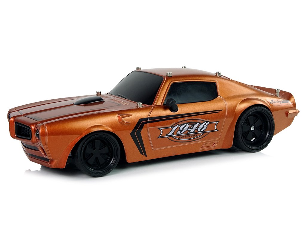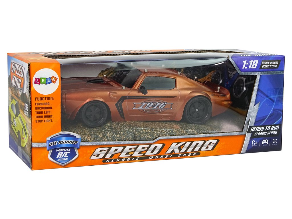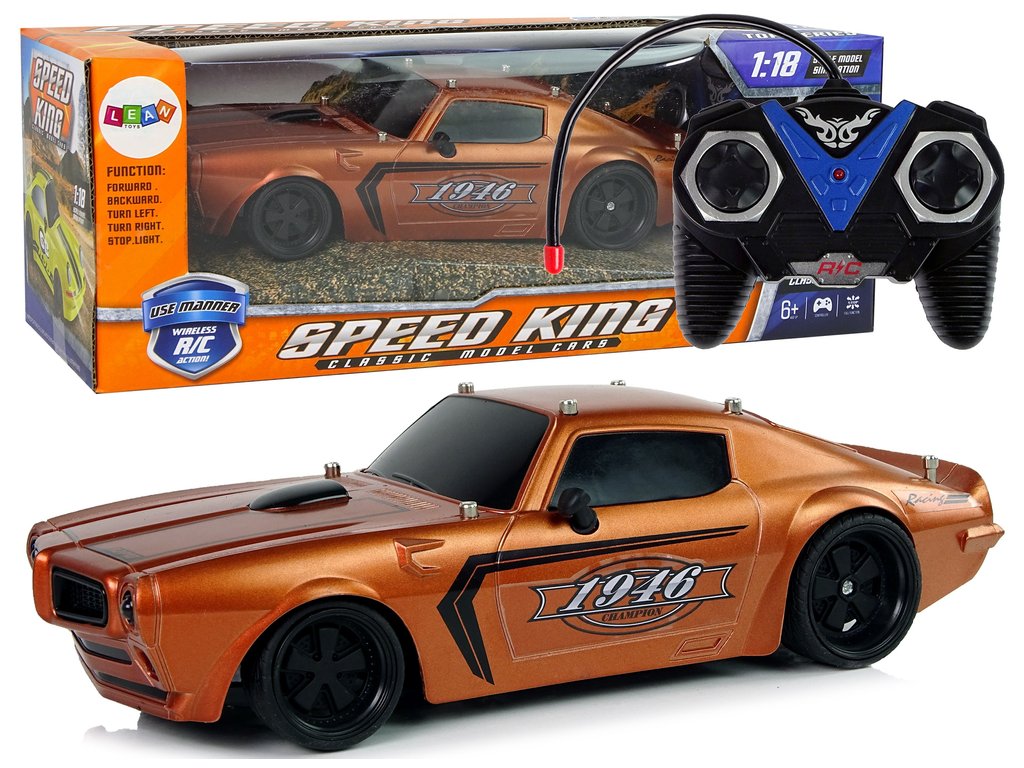 Спортна кола с дистанционно управление RC Champion 1:18 бронзова разполага с лека и здрава конструкция, спортен дизайн с черни прозорци и черни детайли на капака, както и етикети Champion 1946.