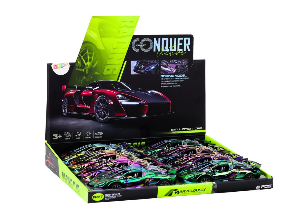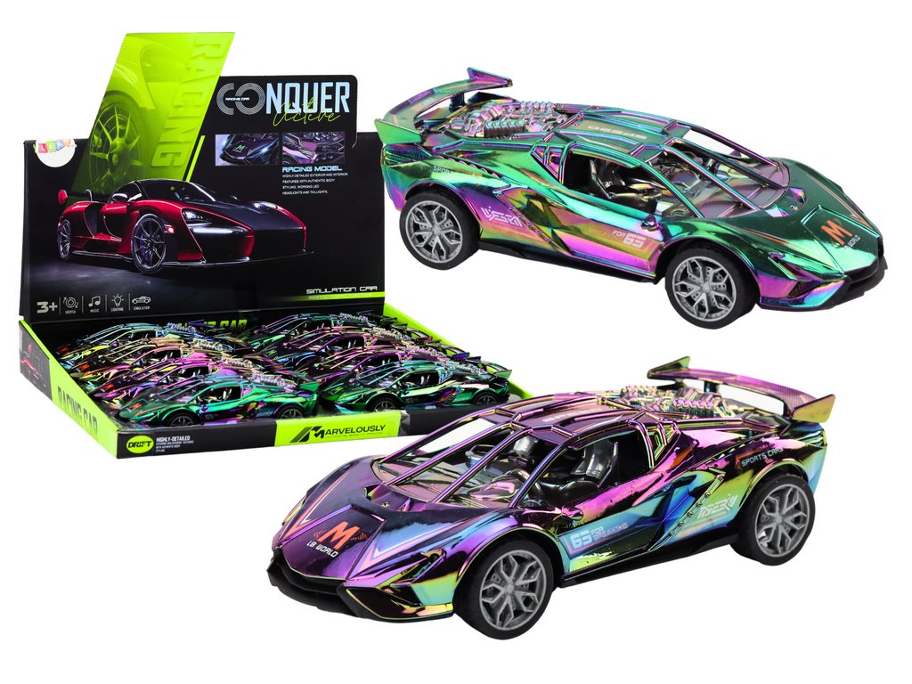 Тази спортна кола с ефекти цветен хамелеон е мечта за всеки малък фен на автомобилите, чието купе променя цвета си според осветлението и ъгъла на гледане, създавайки дъгови оттенъци и нежни светлинни отблясъци.