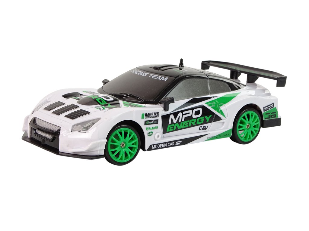 Супер спортна кола за дрифт с дистанционно управление RC 1:24 с комплект резервни гуми ще зарадва всеки фен на автомобилните състезания. Колата е изработена в мащаб 1:24 и вярно имитира външния вид на истински "ралита автомобили". Ускорява до 15 км/ч, което ще удовлетвори малките водачи. Играчката се управлява дистанционно чрез 2,4GHz контролер с вградена антена.