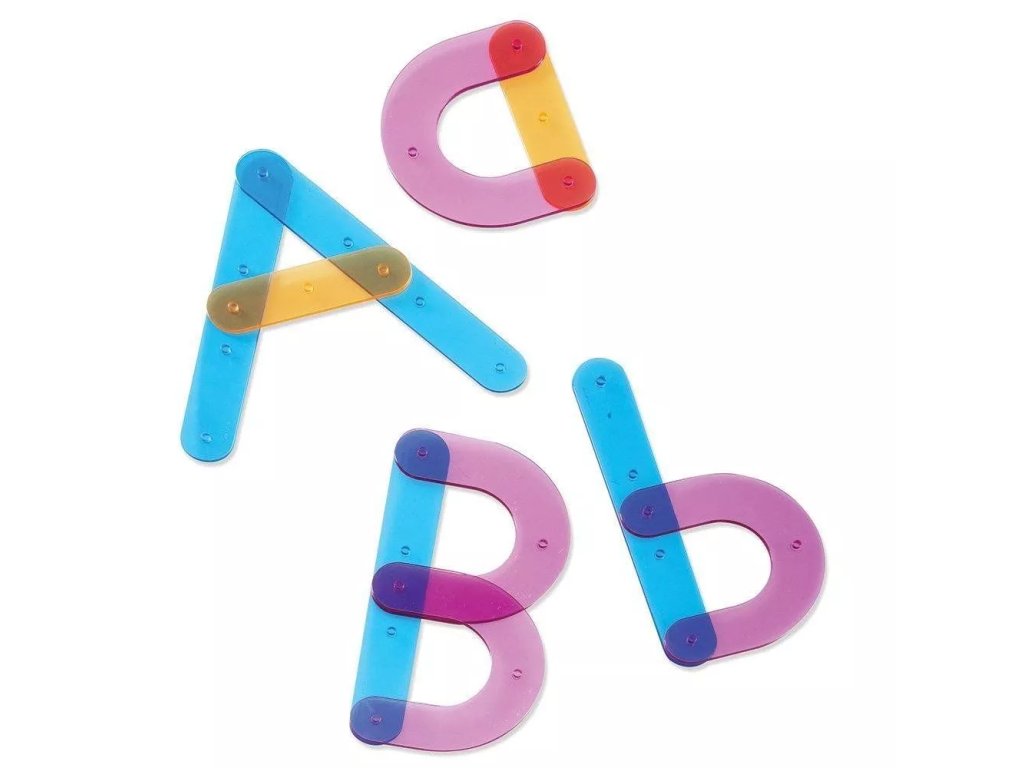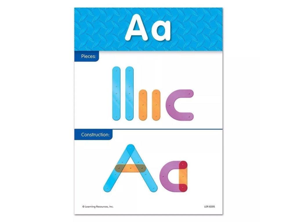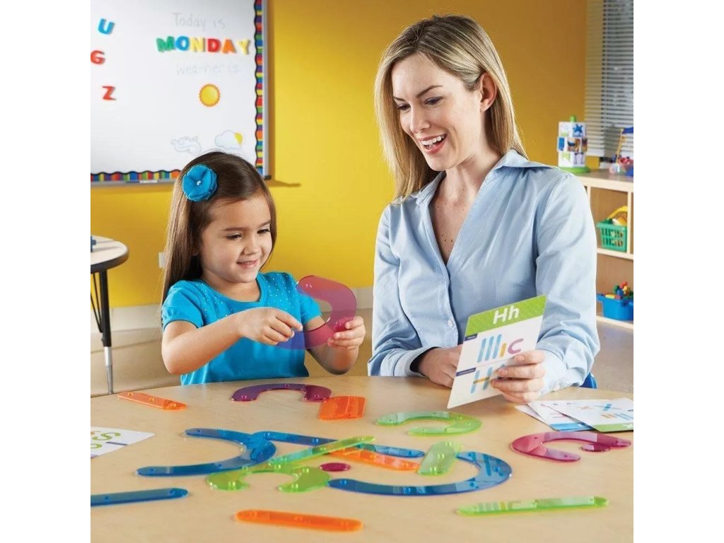 Детето получава карта с изображение на желаната буква и информация за това, от колко и какви големи части трябва да състави буквата. Частите са цветни и децата ги прищракват една към друга, като по този начин създават малки и големи букви от азбуката.