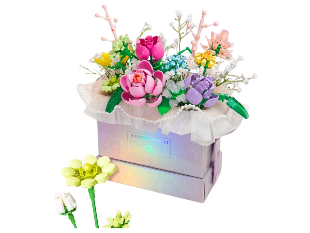 Stavebnice květinová kompozice v boxu s LED podsvícením 706 dílků