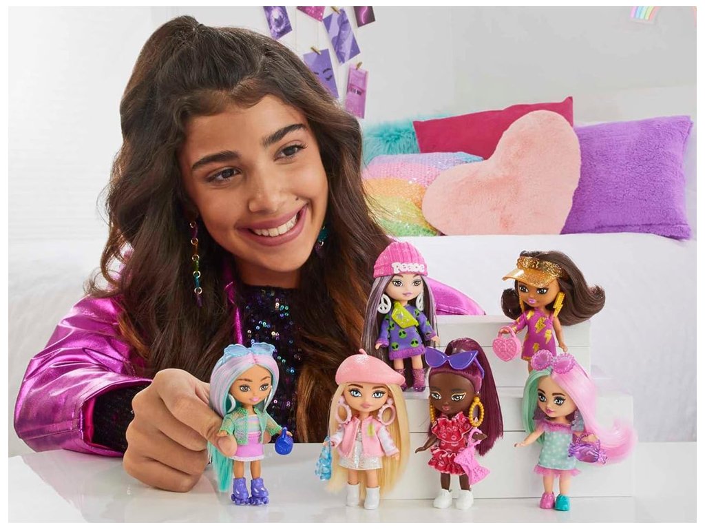 Колекцията Стилна модна кукла Барби Екстра Мини Минис с аксесоари HLN46 представя миниатюрни кукли Барби, които излъчват уникален и смел стил, пълен с цветове, шарки и фантастични аксесоари.