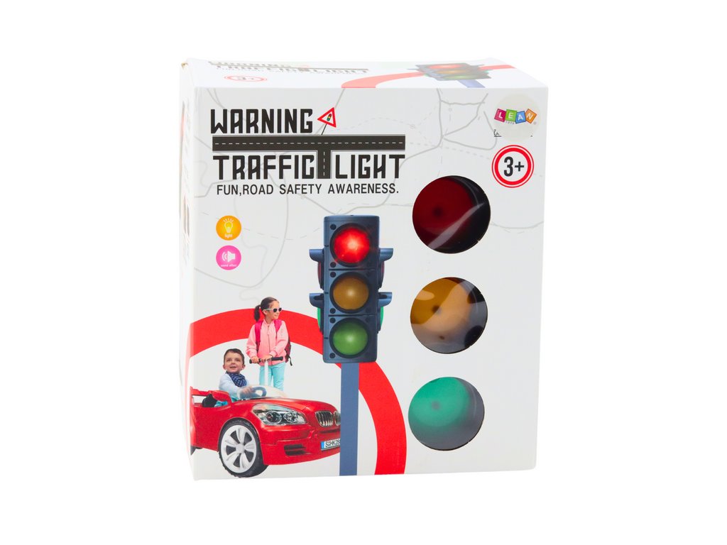 Светофар със звук и светлини е интерактивен образователен помощник, който помага на децата да се запознаят с правилата за движение по пътищата. Благодарение на реалистичните звукови и светлинни ефекти той учи значението на червения, жълтия и зеления сигнал и насърчава обучението по безопасно поведение на улицата.