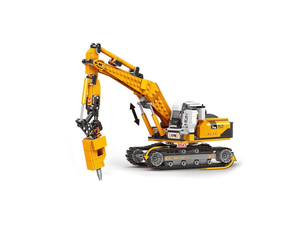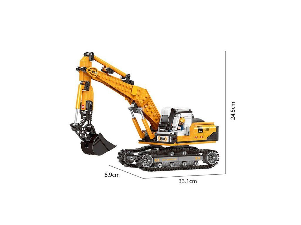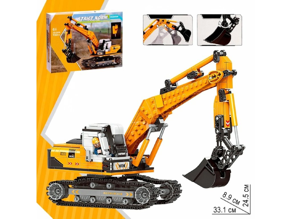 Сглобете реалистичен верижен багер от 722 тухлички и се насладете на часове забавление. Моделът е детайлно изработен и предлага подвижно механично рамо, функционална лопата и възможност за смяна на приставките. Благодарение на отварящия се покрив на кабината и моторния отсек, багерът изглежда много автентично.