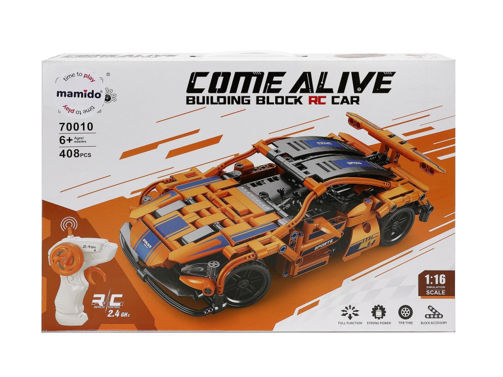 Този комплект за изграждане на RC спортен автомобил предлага чудесна комбинация от конструиране и бързо каране. Първо, детето ще сглоби колата от 408 части, след което може да я управлява с 2,4 GHz дистанционно управление. Моделът има реалистичен спортен дизайн, детайлна конструкция и е идеален за любителите на строителни комплекти и радиоуправляеми коли. Мащаб 1:16 осигурява идеалния размер за игра у дома и навън. Автомобилът е проектиран за стабилност, добро управление и мощно задвижване. Играчката е подходяща за деца от 6 години.