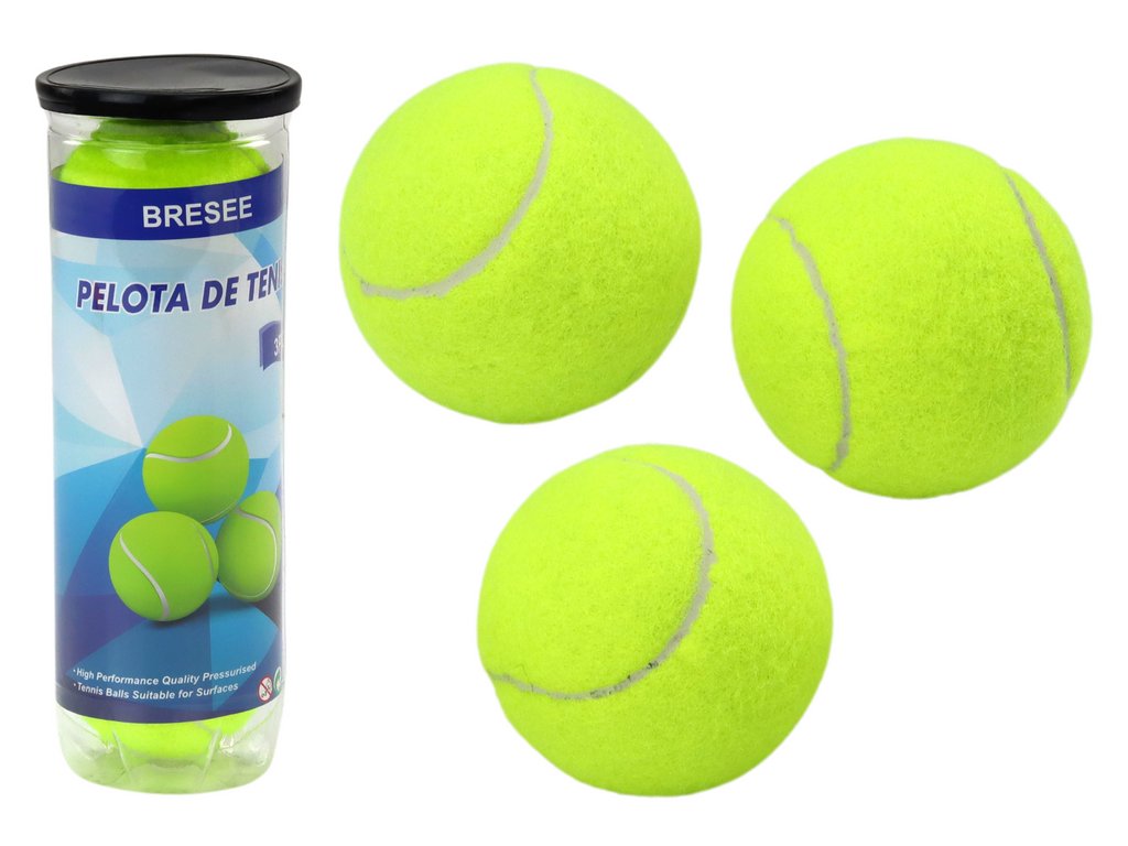 Комплектът съдържа три топки с диаметър 6,5 см, идеални за тенис. Топките са изработени от висококачествени материали, които гарантират тяхната издръжливост и отлична устойчивост при интензивна игра. Ярко неоново жълтият им цвят осигурява лесна видимост на корта, улеснявайки играчите и съдиите.