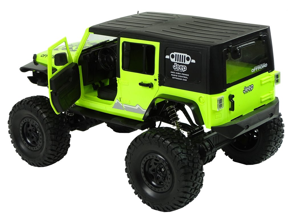 Теренен автомобил с дистанционно управление Rock Crawler 2,4 GHz 1:8 зелен е предназначен за деца над 6 години. Комплектът притежава сертификат CE и отговаря на стандарта EN 71. Включва 7,4V батерия и три 1,5V AA батерии. Опакован е в кутия с прозрачен капак и е идеален за подарък.
