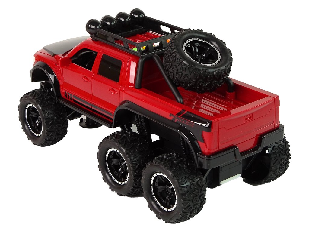 Всички детайли като затъмнени прозорци и резервна гума на задната част допълват характерния офроуд стил. Допълнително забавление осигуряват звуковите ефекти и светлините. При натискане на цветните бутони на покрива, децата могат да се насладят на четири различни звука и мигащи светлини.