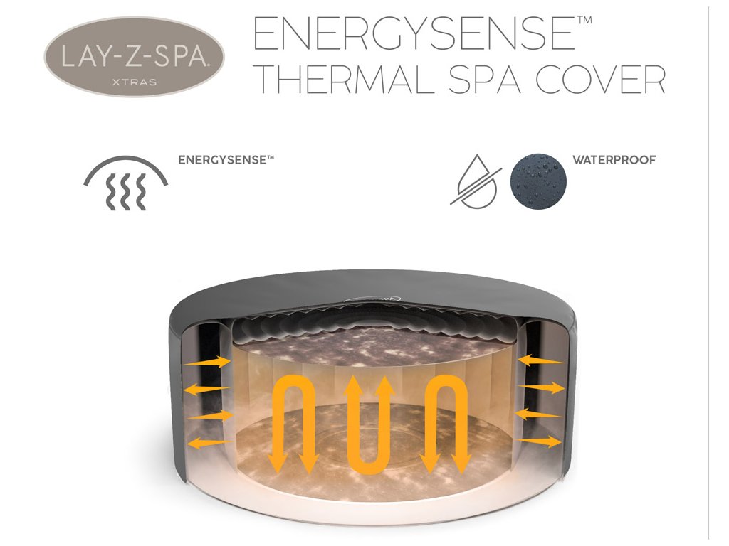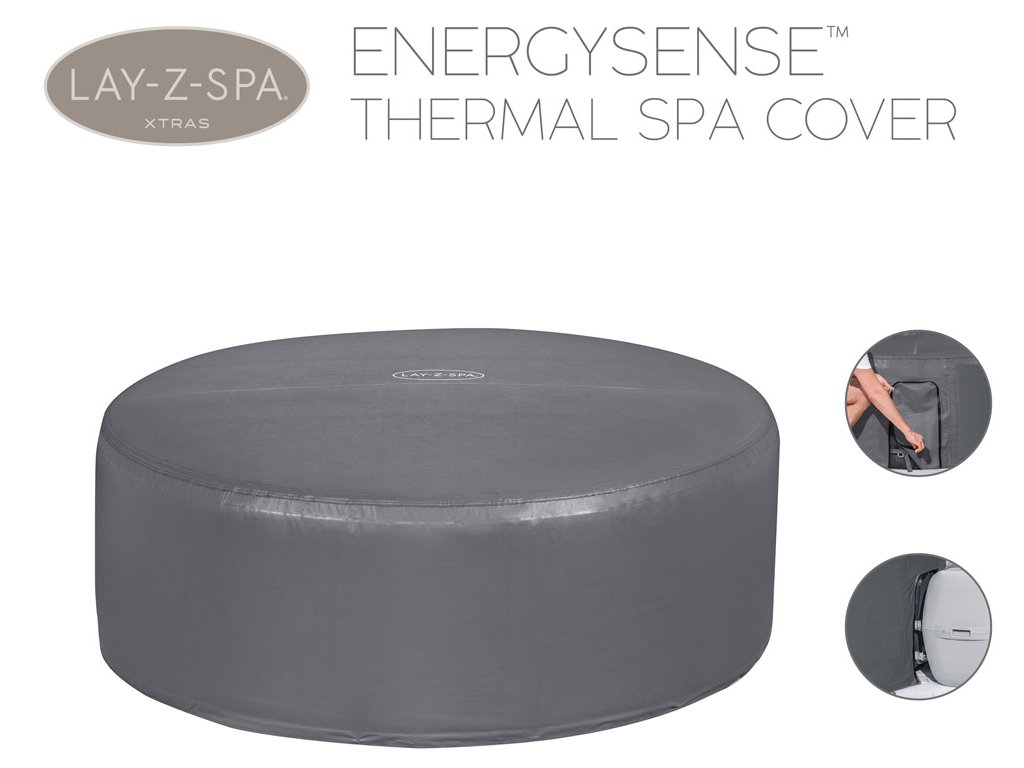 Термоизолационен калъф за кръгла джакузи е идеалният избор за тези, които желаят луксозен релакс с максимална интимност. Термоизолационният калъф е отлично решение за нетърпеливите, които искат да се насладят на релаксация в топла, бурбуликаща вода след дълъг ден. Изолираният калъф помага за поддържане на постоянна температура на водата и значително съкращава времето за загряване. Благодарение на технологията ENERGYSENSE™ повишава енергийната ефективност на джакузито, което води до икономия на разходи.