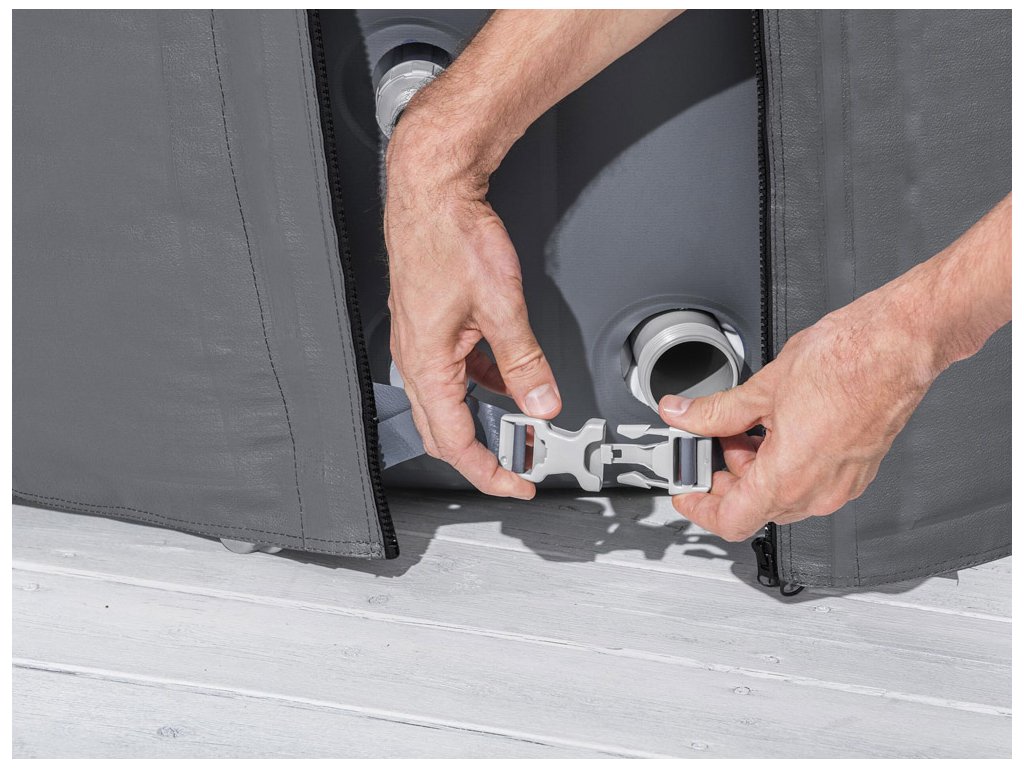 - Възможност за регулиране на височината чрез велкро ленти, куки и ремъци за по-добро прилягане към джакузито