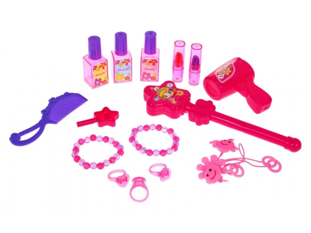 Приказна тоалетна масичка с аксесоари и звукови ефекти. Тоалетната масичка разполага със светлина в огледалото, която свети в 3 цвята (синьо, червено, розово). Тоалетката има 4 музикални мелодии. В комплекта е включена магическа пръчка за феи.