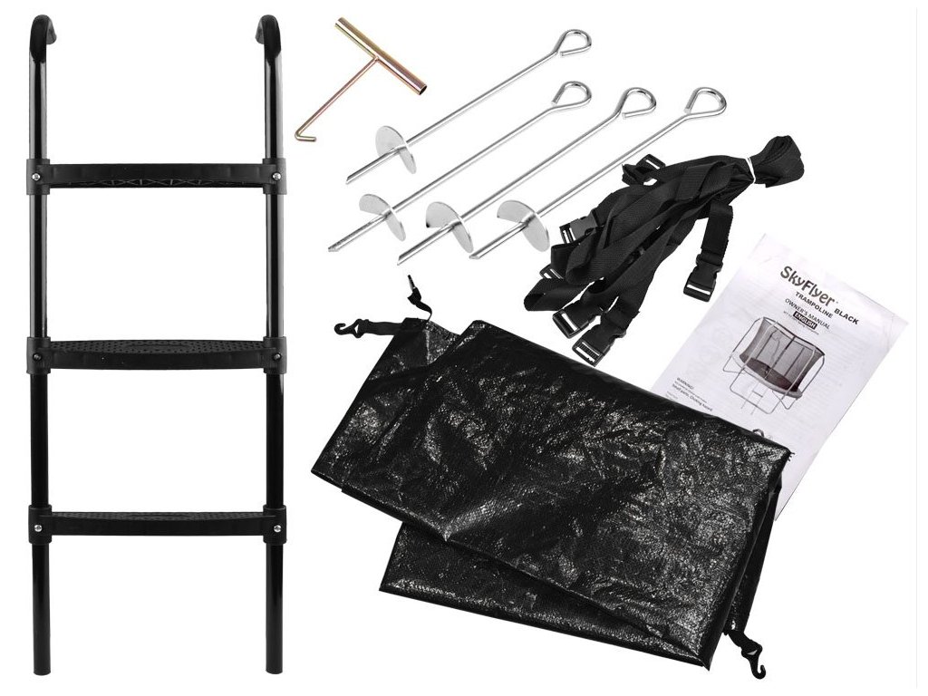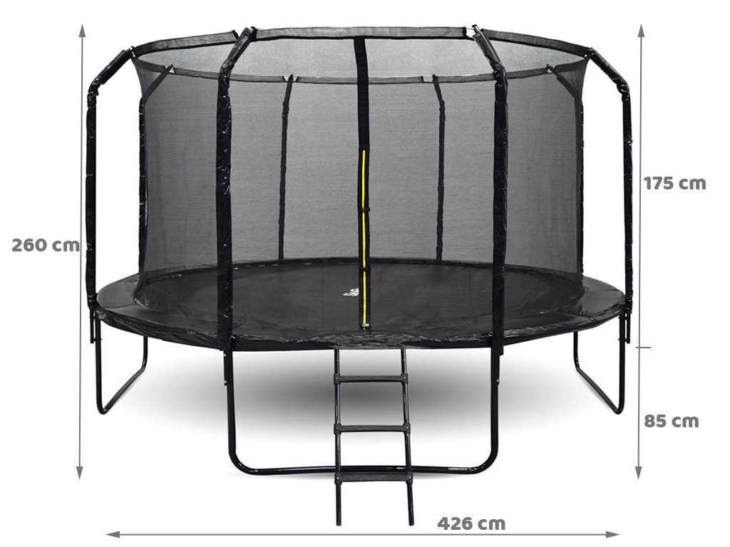 Характеристики на трамплин с предпазна мрежа и стълба 426 см черен: