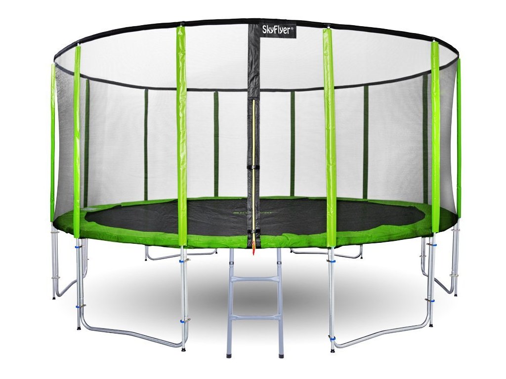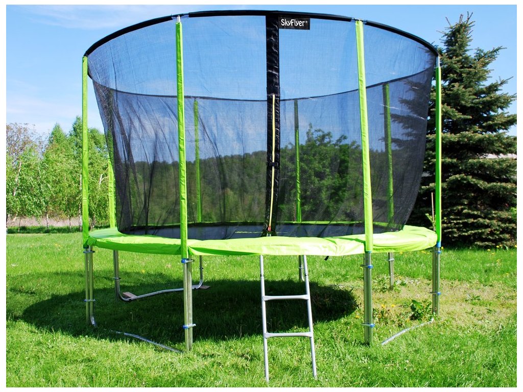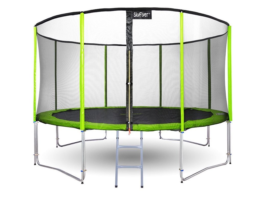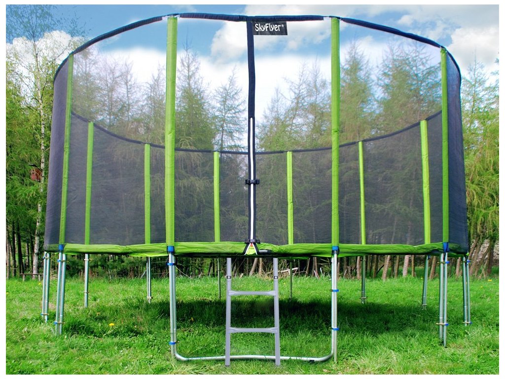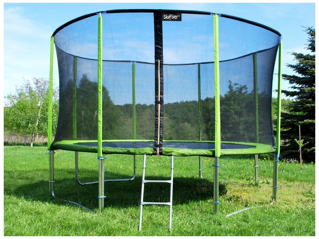 Трамплин с предпазна мрежа и стълба 487 см зелен