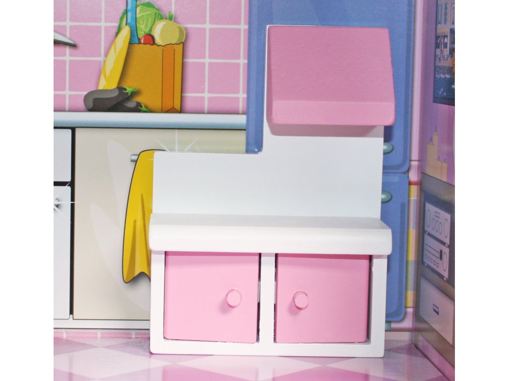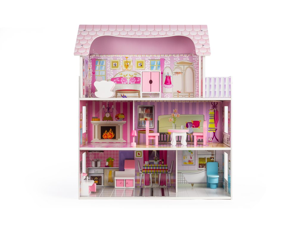 Триетажна дървена къща за кукли Tilli 70см + LED осветление 8бр мебели – вълшебен свят за вашите деца!