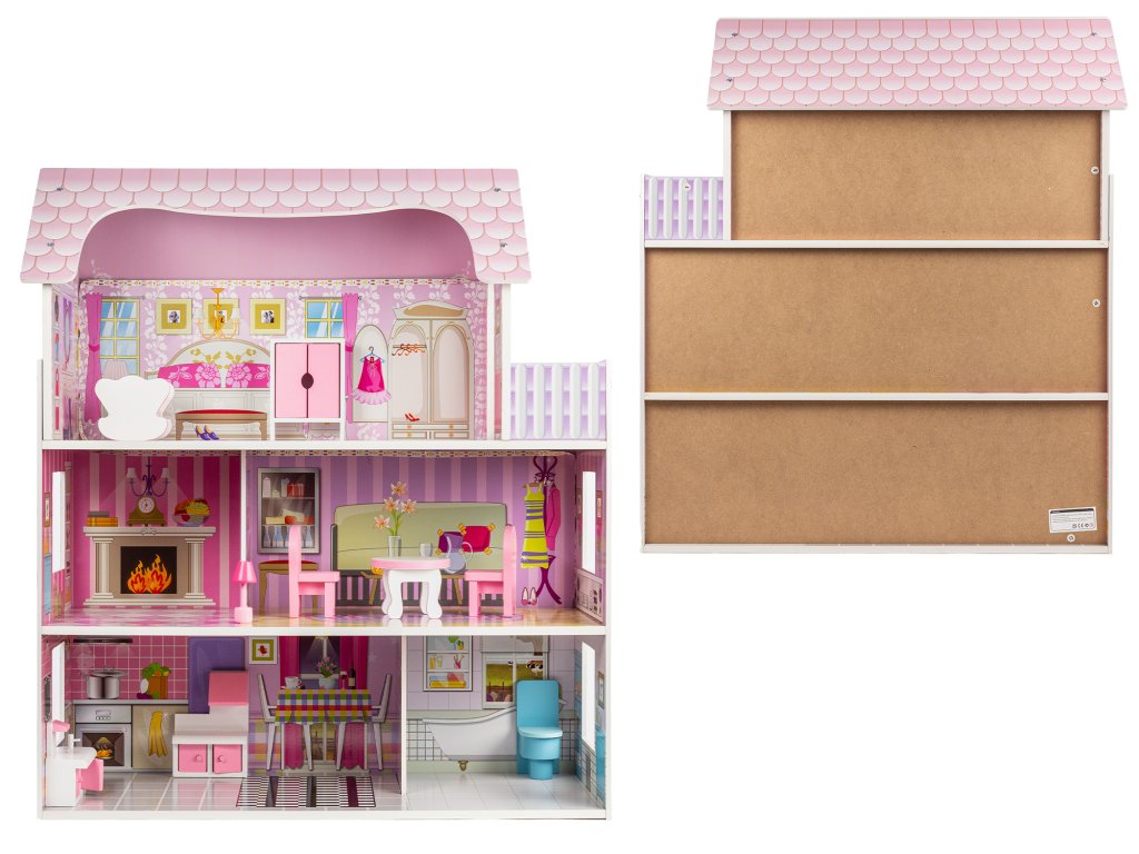 Тази луксозна триетажна къща за кукли Tilli е перфектният подарък за всяко малко момиченце. Предлага просторно ниво, изпълнено с елегантност и детайлен дизайн, който стимулира детското въображение и творчество. С размери 62 x 27 x 70 см осигурява достатъчно пространство за часове забавление.