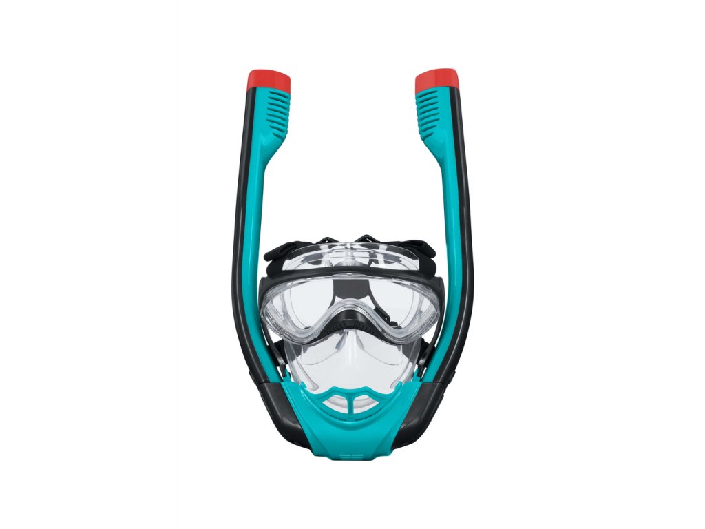 Този иновативен дизайн на цялолицевата маска и шнорхел от ново поколение позволява естествено дишане през носа и устата под вода. Вдишвате свеж въздух през един шнорхел и издишвате CO2 през другия благодарение на технологията за еднопосочен въздушен поток. Меката силиконова конструкция, покриваща цялото лице, прилепва удобно и сигурно към главата, осигурявайки естествено дишане и уравняване на налягането при спускане и изкачване под вода. Модерната технология на сухия шнорхел предотвратява проникването на вода в маската при потапяне. В горната част на шнорхела има малък поплавък, който позволява потапяне без притеснение от вода в зоната за дишане. В случай, че вода попадне в шнорхела, наличният изпускателен вентил улеснява почистването.